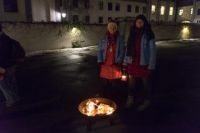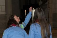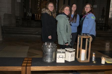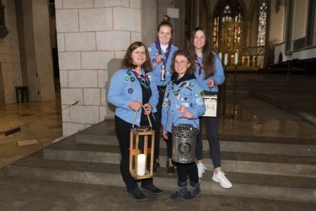 Vier Pfadfinderinnen* aus dem Stamm Schwabegg holten das Friedenslicht in Wien ab und brachten es mit dem Zug durch das winterliche Schneegestöber sicher nach Augsburg.
