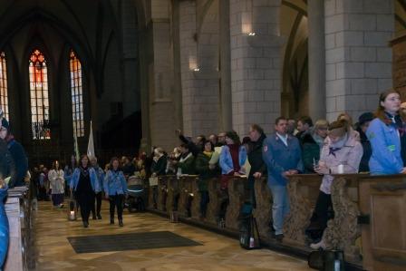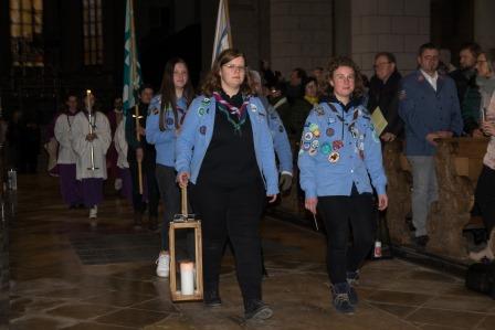Im Gottesdienst im Augsburger Dom unter dem Motto „Frieden beginnt mit dir“, den Pfadfinderinnen* aus Friedberg vorbereitet haben, wurde auf all die Ungerechtigkeiten und Konflikte hingewiesen, die uns heutzutage beschäftigen und gegen die wir gemeinsam einstehen müssen. In seiner Predigt betonte Diözesanpräses, Florian Stadlmayr, dass wir durch Selbst- und Nächstenliebe diese Konflikte lösen und Frieden verbreiten können.