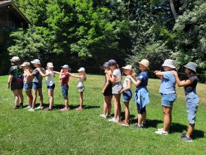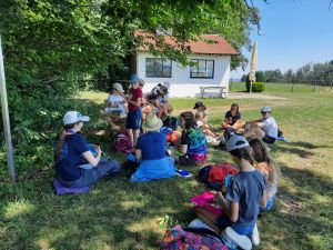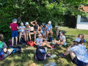 Am 16. und 17. Juli ging es für etwa 15 Wichtel und Pfadis der Stämme Schwabegg und Krumbach ins Crescentiakloster in Kaufbeuren. Die Spiri-AG der Diözese hatte ein abwechslungsreiches Programm erarbeitet, das Spiel und Spaß mit spirituellen Einheiten verband. Nach der Ankunft im Kloster und einer kleinen Stärkung wanderten die Pfadis bei sonnigem Wetter den Crescentia-Pilgerweg rund um Kaufbeuren. Der Spiri-Hajk führte querfeldein vorbei an einer Kapelle, dem Römerturm und einigen kleinen Dörfern. An diesen Zwischenstopps durften die Pfadfinder*innen nicht nur ihre persönliche Schatzkiste mit allerhand Naturmaterialien befüllen, sondern auch einiges über die Heilige Crescentia erfahren und Vertrauensspiele ausprobieren. Nach etwa fünf Stunden erreichten alle wieder das Kloster und hatten sich eine (kulinarische) Abkühlung redlich verdient! Den Abend ließ die Gruppe auf dem Kaufbeurer Tänzelfest ausklingen, wo man mittelalterliche Speisen, Kleidung, Spielzeuge und Schmuck kaufen konnte und den kostümierten Trommlerparaden zusehen konnte. Um etwas ungestörter zu sein, bot der Klostergarten mitten in der Altstadt den idealen Platz zum Singen und Herumtollen. Ihr Nachtlager durften die Pfadfinder*innen im Nebengebäude des Klosters aufschlagen; dort reflektierten sie vor dem Einschlafen noch einmal den vergangenen Tag. Am Sonntag schließlich endete der Ausflug abermals im Klostergarten, wo jede*r Teilnehmende einen Anhänger mit dem Klosterlogo bekam.